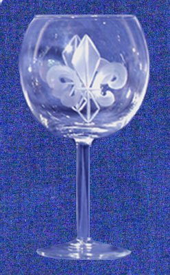 Individually Hand Etched Fleur De Lis Red Wine Glass 7 1/4"H Set / 4