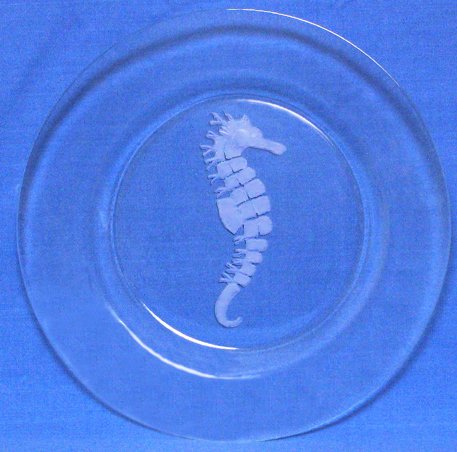 Individually Hand Etched Seahorse Glass Charger 11.5"D Set / 2