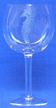 Individually Hand Etched Seahorse Red Wine Glass 7 1/4"H Set / 4