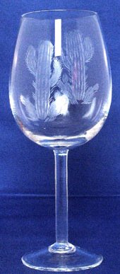 Individually Hand Etched Cactus White Wine Glass 9" Set / 4 Delicately etched glassware brings the feeling of a spring meadow, the southwest or a coastal shoreline to your table. Each piece is hand etched by a master engraver.