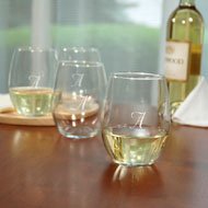 These Personalized Stemless Wine Glasses are a great way to give your next event a personalized touch by allowing you to choose what letter you wanted etched on all glasses. Engraved with a single, uppercase block initial, these custom glasses come in a set of four. Glassware makes a great party or wedding favors. Measures 5" T. Holds up to 21 ounces. Made of hand blown glass. Assembly level/degree of difficulty: No Assembly Required. Made in America
